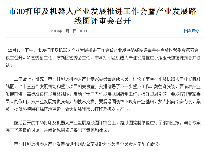 市3D打印及機(jī)器人產(chǎn)業(yè)發(fā)展推進(jìn)工作會(huì)暨產(chǎn)業(yè)發(fā)展路線圖評(píng)審會(huì)召開