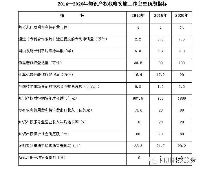 到2020年,知識產權法治環(huán)境更加完善,創(chuàng)造、運用、保護和管理知識產權的能力顯著增強,知識產權意識深入人心,知識產權制度對經濟發(fā)展、文化繁榮和社會建設的促進作用充分顯現(xiàn)。