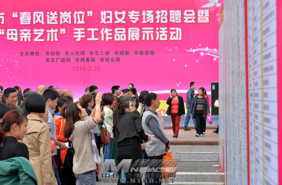 為更好地服務(wù)城鎮(zhèn)婦女就業(yè)創(chuàng)業(yè)和用人單位用工需要,昨(26)日,2015“春風送崗位”婦女專場招聘會在人民公園拉開帷幕,190余家企事業(yè)單位提供了15158個崗位。招聘會共吸引5000余人到場求職,676人現(xiàn)場達成意向用工登記。現(xiàn)場還舉行了“母親藝術(shù)”手工作品展示等活動。