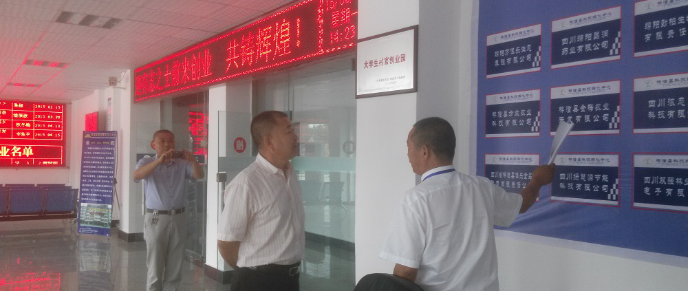 2015年6月8日下午,綿陽(yáng)市政協(xié)副主席、市委統(tǒng)戰(zhàn)部部長(zhǎng)苗平在梓潼縣縣委常委鄧志軍、梓潼縣政協(xié)副主席杜登元、綿陽(yáng)市科技城科源科技有限公司董事長(zhǎng)廖藝徽的陪同下到梓潼縣科技孵化中心視察調(diào)研。