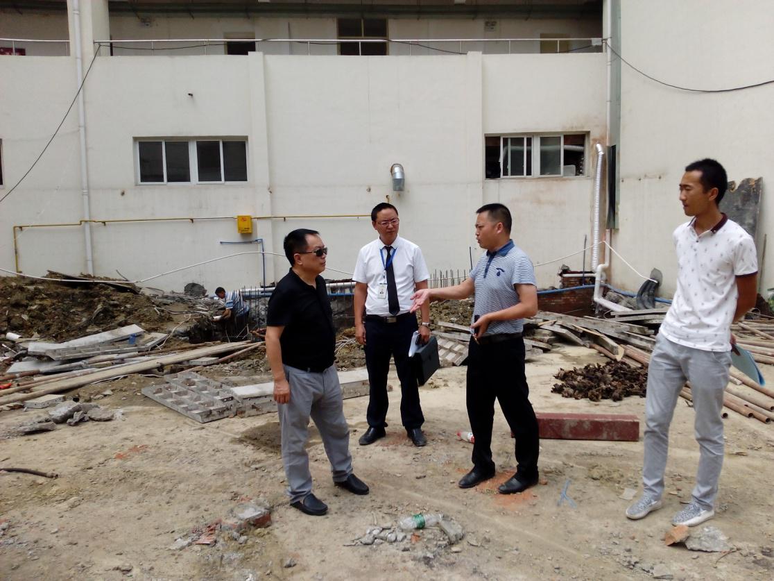 廖藝徽董事長(zhǎng)冒著高溫酷暑,親臨創(chuàng)客空間施工現(xiàn)場(chǎng)督促施工進(jìn)度。