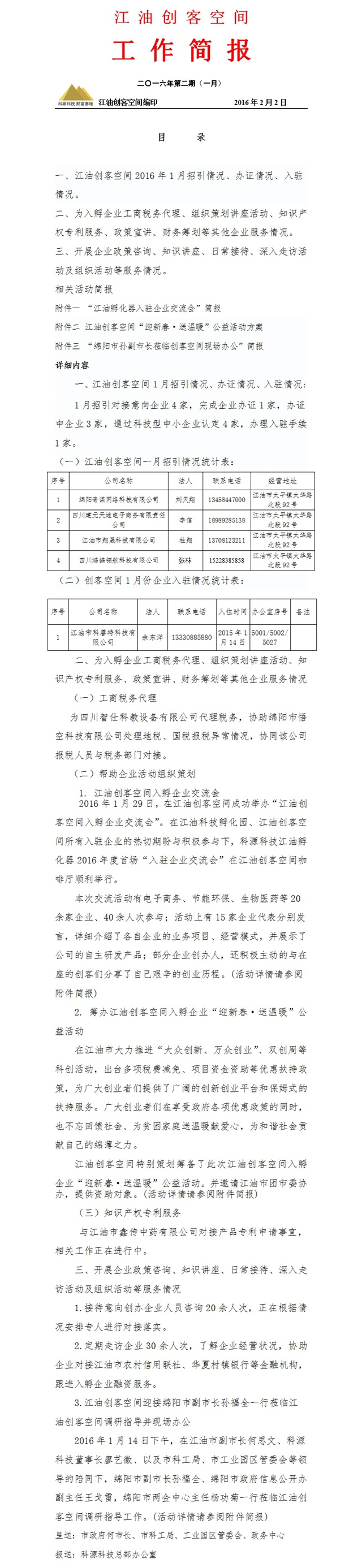 江油創(chuàng)客空間二零一六年一月工作簡報(bào)