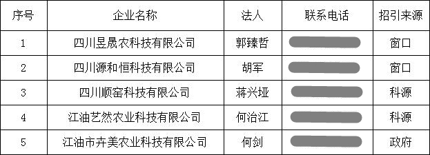 (一)江油市科技孵化園四月招引情況統(tǒng)計表: