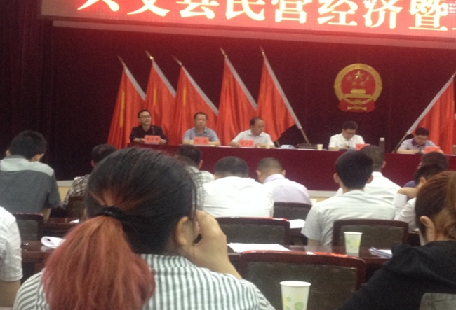 2016年5月4日上午,由興文縣縣委組織,縣委、縣政府領(lǐng)導(dǎo),縣級(jí)各部門、企事業(yè)主要負(fù)責(zé)人,各鄉(xiāng)鎮(zhèn)黨委書記、鄉(xiāng)鎮(zhèn)長(zhǎng),縣工考企業(yè)、重點(diǎn)工業(yè)企業(yè)、擬升規(guī)小微企業(yè)負(fù)責(zé)人等200余人參加的“興文縣民營(yíng)經(jīng)濟(jì)暨工業(yè)和服務(wù)業(yè)發(fā)展大會(huì)”在興文縣人民政府會(huì)議廳隆重召開。