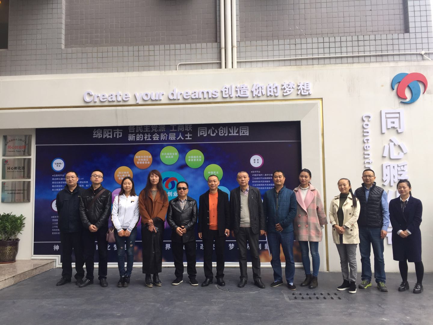 市委統(tǒng)戰(zhàn)部、科創(chuàng)區(qū)領(lǐng)導(dǎo)組成的項(xiàng)目驗(yàn)收組一行與同心孵化器管理團(tuán)隊(duì)合影