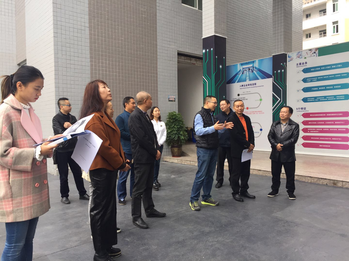 2017年11月9日上午,市委統(tǒng)戰(zhàn)部副部長(zhǎng)馮斌、市非公有制經(jīng)濟(jì)組織綜合黨委書(shū)記楊靜、科創(chuàng)區(qū)工會(huì)主席黃春慧、科創(chuàng)區(qū)創(chuàng)服中心企業(yè)科副科長(zhǎng)王葦一行在四川神州同心孵化器管理公司董事長(zhǎng)廖藝徽陪同下對(duì)同心孵化器陽(yáng)光樓文化建設(shè)進(jìn)行驗(yàn)收。
