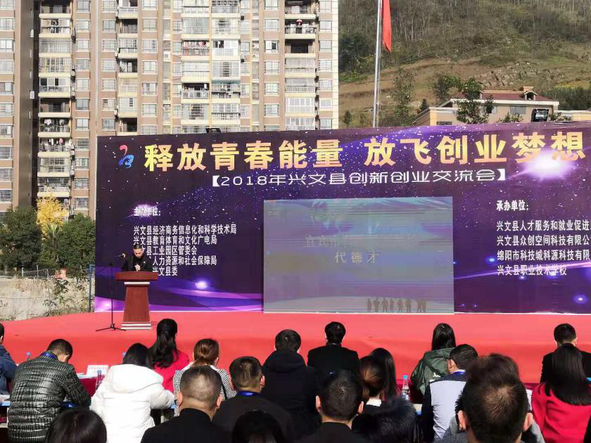宜賓市科技局副局長代德才在大會上講話,對興文縣舉辦的創(chuàng)新創(chuàng)業(yè)大會給予高度肯定,表示將積極支持興文青年群里創(chuàng)新創(chuàng)業(yè),并將繼續(xù)支持興文眾創(chuàng)空間平臺提升發(fā)展。
