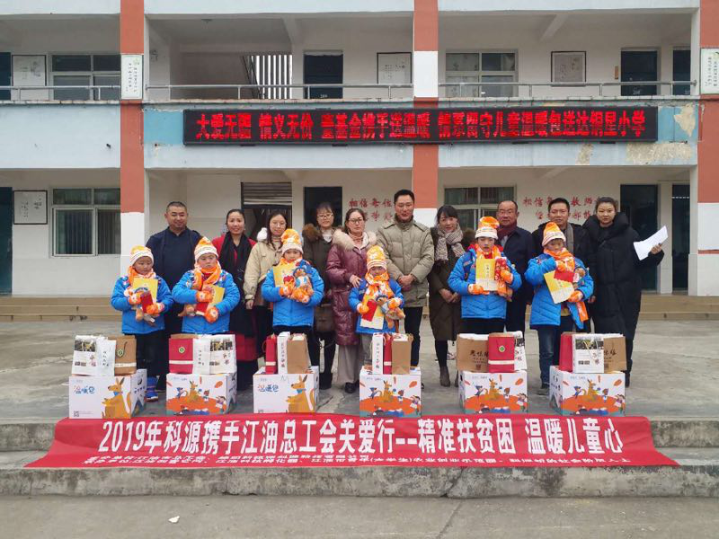 2019年1月10日,綿陽(yáng)市科技城科源科技有限公司攜手江油市總工會(huì)開(kāi)展“精準(zhǔn)扶貧困,溫暖兒童心”公益活動(dòng),慰問(wèn)江油市銅星小學(xué)和新春鄉(xiāng)小學(xué)貧困留守兒童。